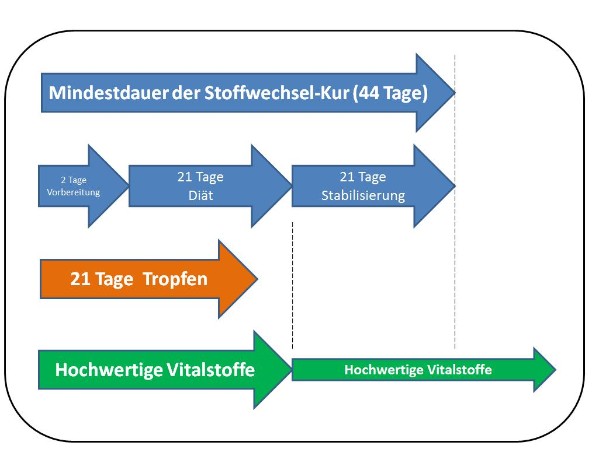 Eine erfolgreiche Stoffwechselkur dauert mindestens 44 Tage, kann bei Bedarf aber auch verlängert werden.